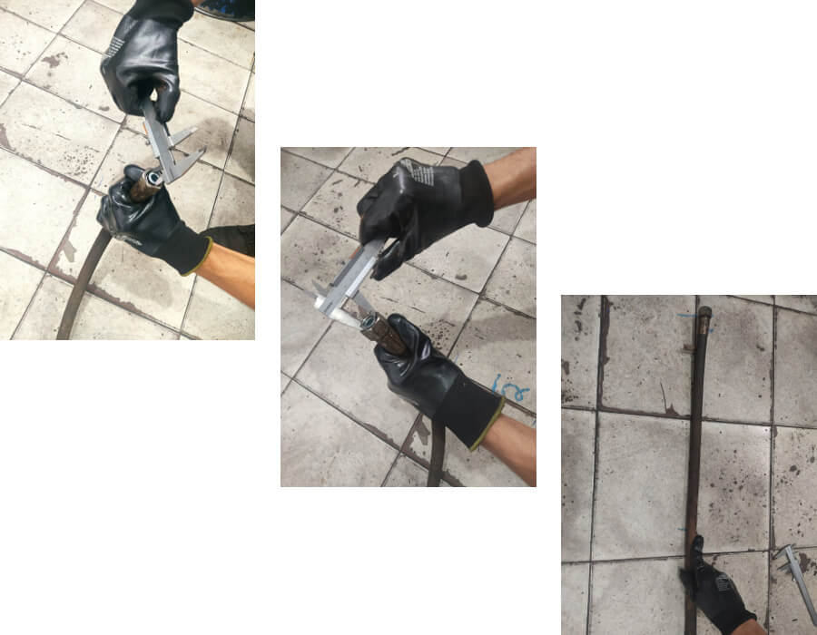 Na chegada de uma mangueira por amostra ou coletada no cliente, primeiro medimos o comprimento da mangueira, identificamos a bitola e os terminais que serão utilizados na fabricação.