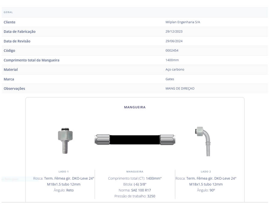 Realizamos a higienização da mangueira e colocamos proteção nos terminais evitando a entrada de impurezas, certificando a não contaminação do sistema hidráulico de nossos clientes.